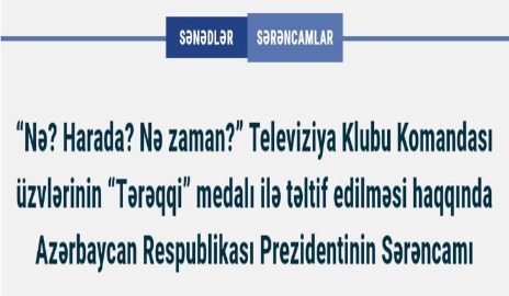 Президент Азербайджана Ильхам Алиев подписал распоряжение о награждении членов команды телевизионного клуба «Что? Где? Когда?».