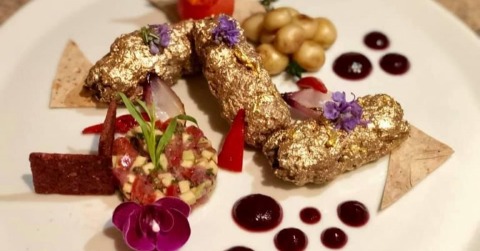 Известный азербайджанский кулинар Илькин Акперзаде, проработавший во многих городах мира, придал люля-кебабу уникальность, покрыв его 24-каратным золотом.