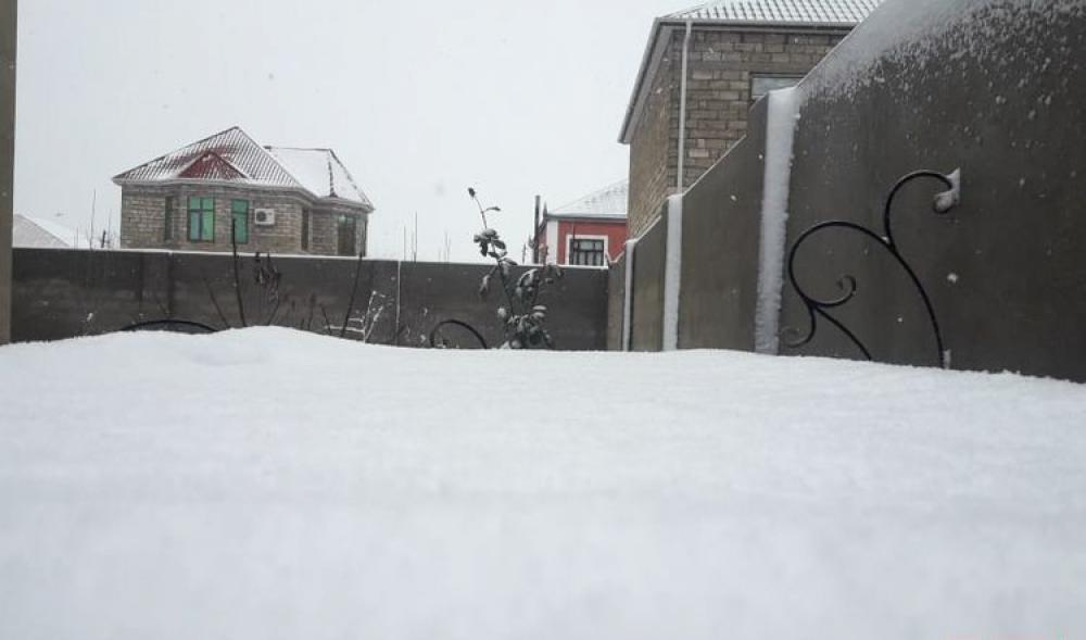В селе Грыз Губинского райнона выпал снег высотой 17 см, в Халтан - 14 см, в Хыналыг - 11 см, в Тенгеалты - 7 см. Высота снежного покрова в поселке Алтыагадж Хызинского района достигла 21 см.