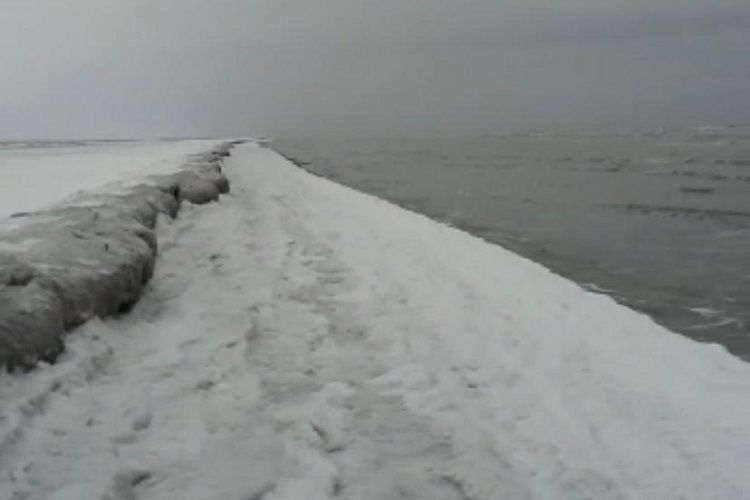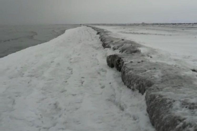 Морозная погода последних дней привела к замерзанию прибрежной полосы Каспийского моря в северном регионе Азербайджана.