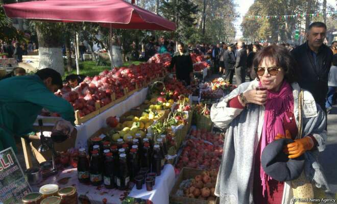 Гостей на празднике любят, на ярмарке ни один продавец не оставит без внимания прогуливающегося мимо его лотка человека. Вас обязательно зазовут попробовать что-то необычное и неповторимое, убедив, что во всем Азербайджане вам не найти вкуснее гранатового сока или запеченных долек граната.