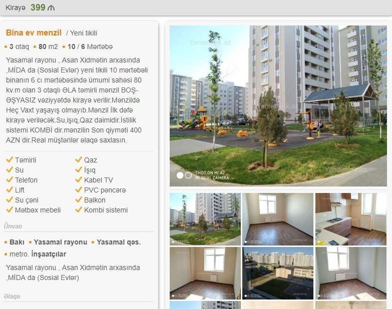 Проданное Государственным агентством жилищного строительства (MİDA) на льготных условиях социальное жилье в Ясамальском жилом комплексе предлагается в аренду, объявление размещено на одном из сайтов.