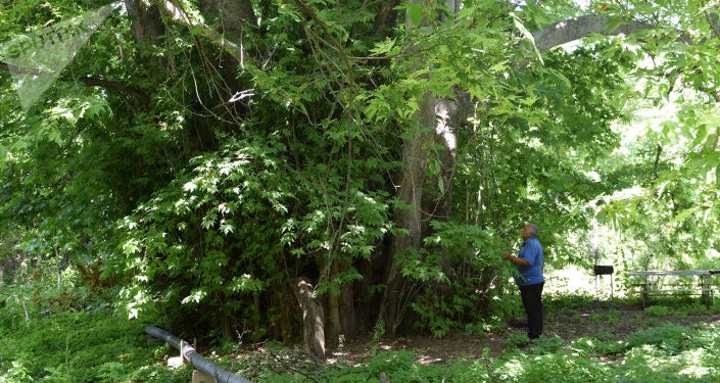 "В 70-е годы прошлого века для подсчета возраста дерева из Москвы прислали двоих ученых. Вместе с азербайджанскими учеными к нам приехало в общей сложности около 20 человек. Они уехали, и потом в сельсовет прислали письмо, в котором было написано, что возраст дерева превышает тысячу лет", - рассказывают местные жители.